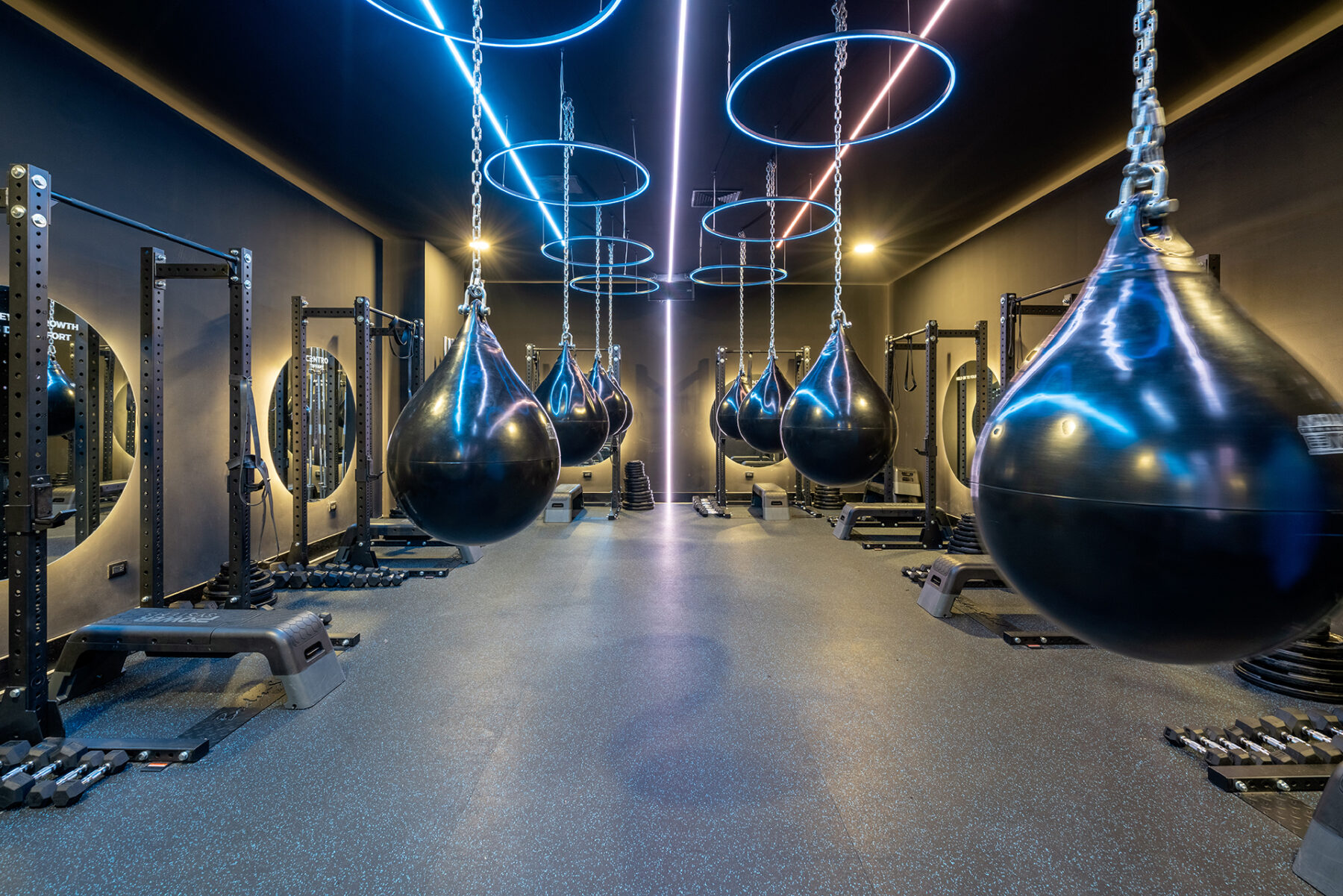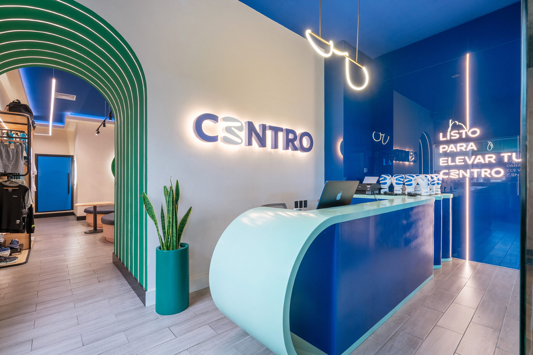 El concepto está inspirado en la fuerza y el movimiento constantes que caracterizan a la comunidad de C3ntro. Los elementos gráficos retro-iluminados y la identidad visual de la marca están inspirados en la precisión del entrenamiento funcional y el boxeo, reflejando un estilo de vida activo. La integración de texturas reflectantes y luces de neón da vida al espacio de forma disruptiva y enérgica, motivando al usuario a superar sus límites desde el primer contacto. El mobiliario a medida y el diseño de la iluminación permiten que en el espacio se respire una atmósfera de alta intensidad y modernidad absoluta.